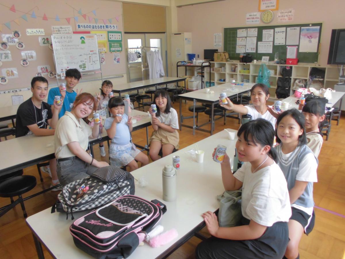 昼食時にには、地球市民学習の金子さんからいただいたジュースで乾杯!