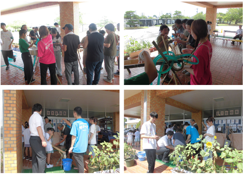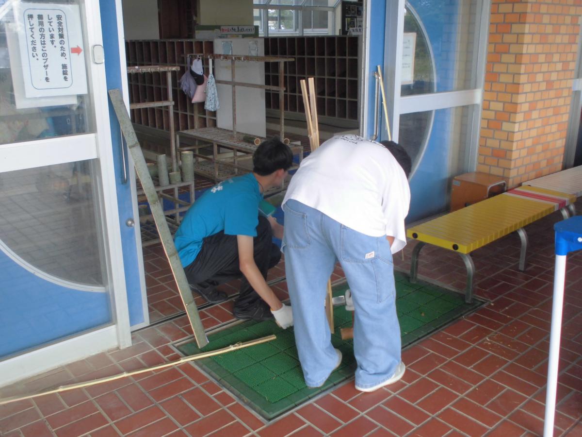 今週月曜日からお世話になっているNPO法人「学びーば」様。いよいよ来校最終日となりました。今日の昼食はみんなで流しそうめん。子どもたちとも協力して水曜日から準備してきました。今日も午前中準備をして、学校前仮設住宅等地域の皆さんをお呼びして、一緒に楽しむ予定です。さてどうなるか楽しみですね。