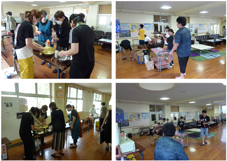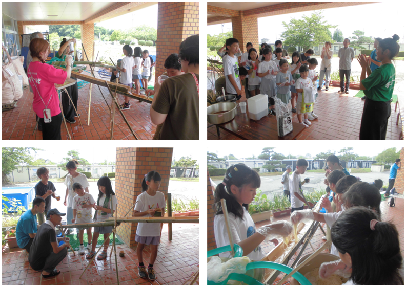 学習が終わると流しそうめんの準備です。そうめんを準備する人、流す準備をする人に分かれ、子どもたちも楽しそうに協力する姿が見られました。