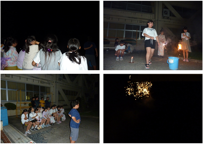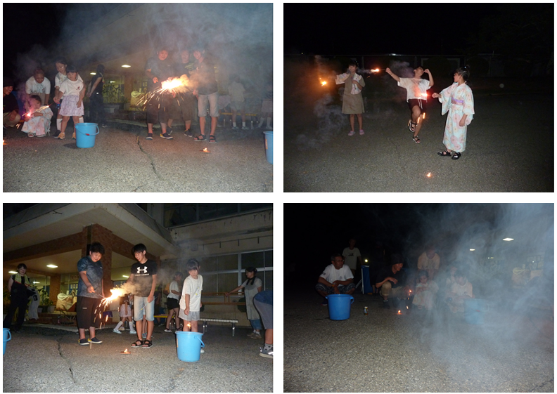 最後はみんなで花火です。豪華な花火は本校の昭和63年度卒業生からの贈り物。みんなで夏の夜を花火で楽しみました。