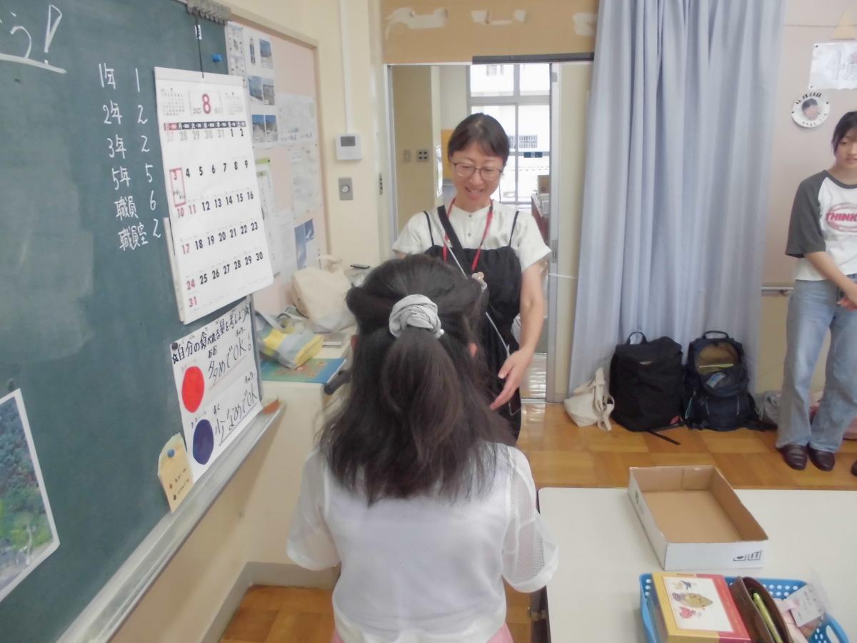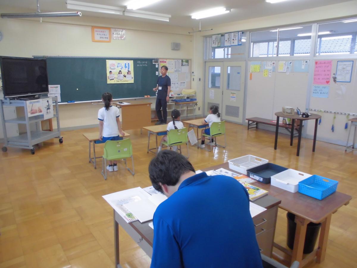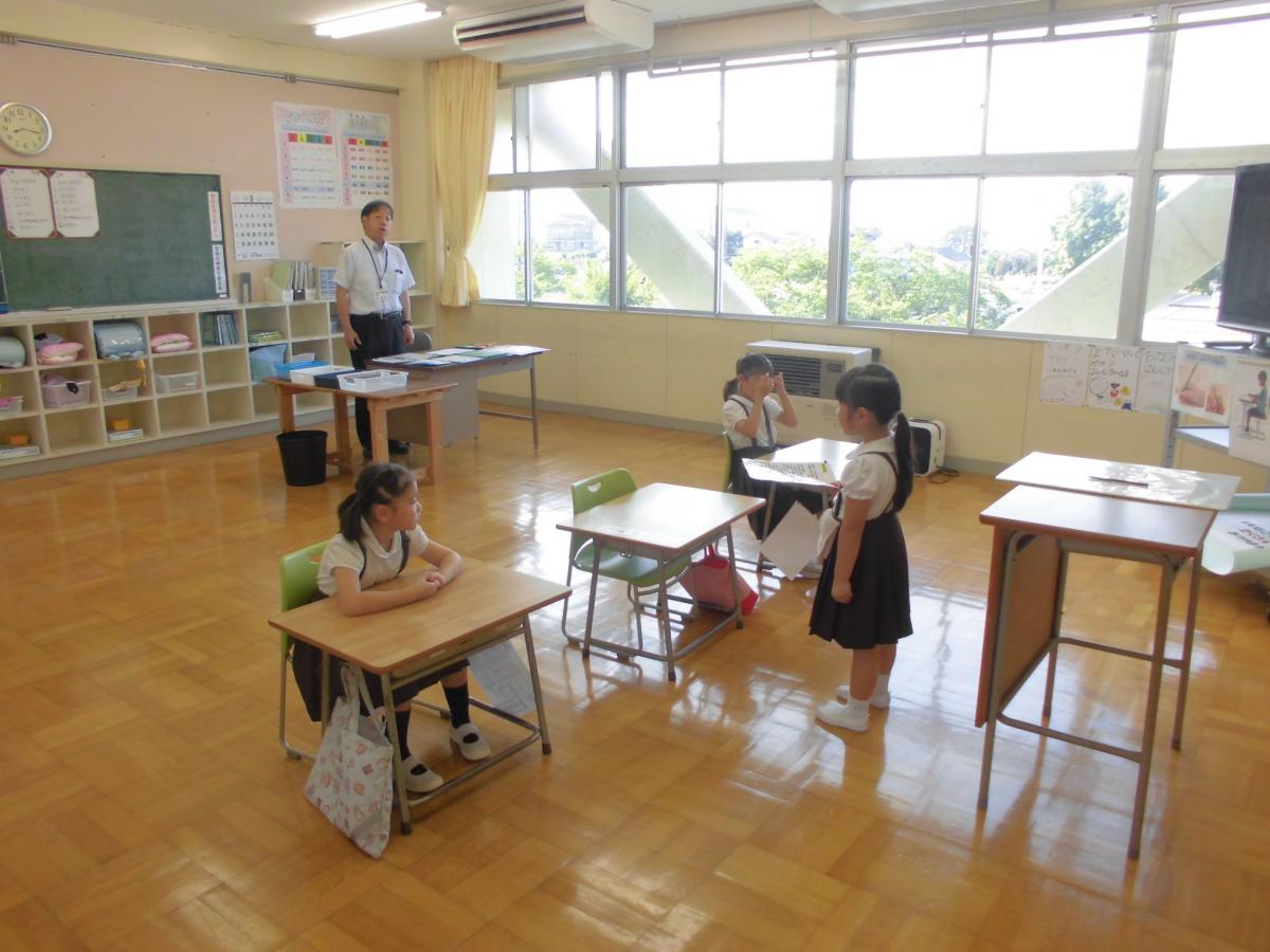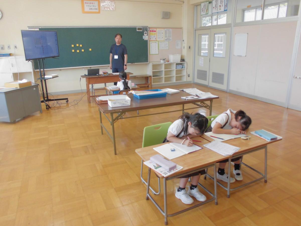 朝の会の様子をのぞくと、みんな元気そうに担任の話を聞いています。1・2年生の担任は夏休みに産休に入ったので新しい担任が、子ども達と流れを確認しながらすすめておられました。