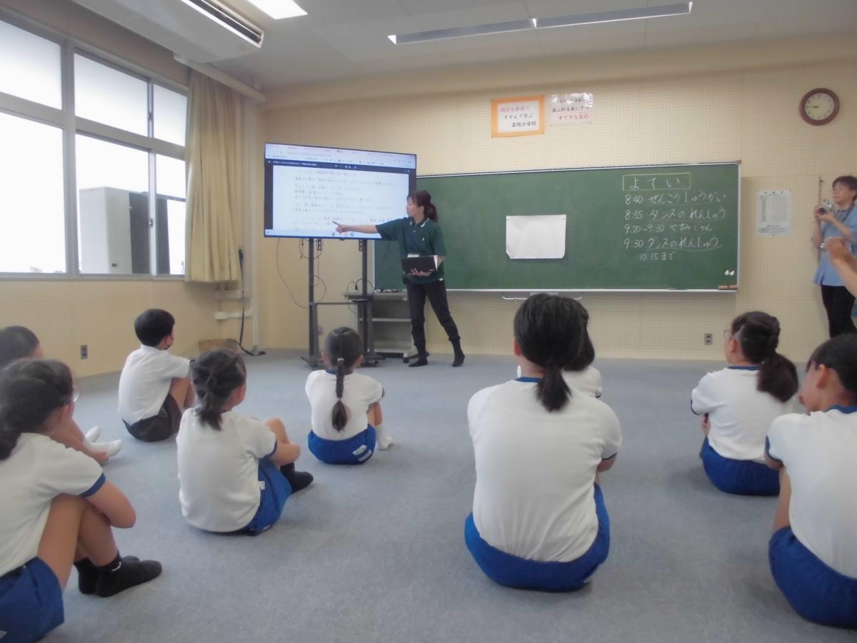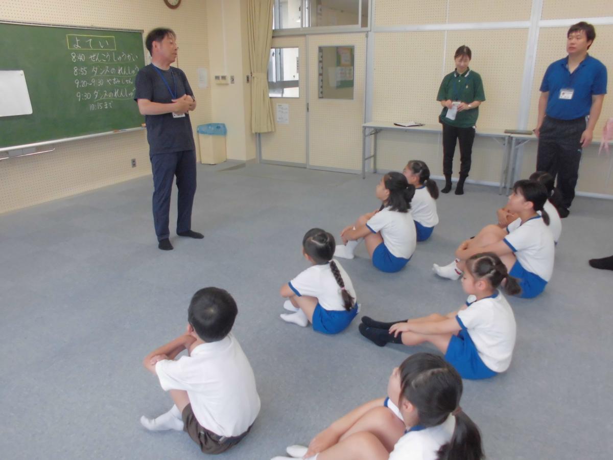 全校朝会後は、運動会のダンス練習です。最初に、体育担当の先生から、なぜ運動会をするのか、運動会で大切なことは何かをお話していただきました。次はいよいよダンス練習。今年は、低学年、高学年、全員の3曲のダンスを披露することに。今日は全員でのダンス練習に取り組みました。最初は戸惑いながらの練習でしたが、終わることには楽しんでダンスする姿が見られました、花丸◎!