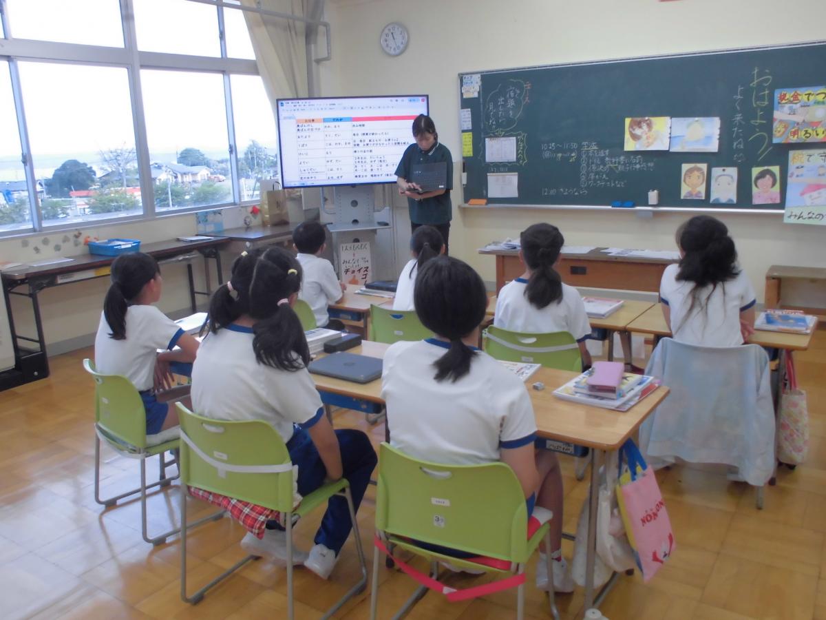 今週も週の後半、今日も学びーばさんが来校され、子どもたちの学習支援を行って下さいました。また、午前中は昨年から交流している、埼玉県【地球市民学習】とのオンライン交流を行いました。9時には、登校予定の児童は全員元気に登校、出席確認・下校時刻を確認して学習がスタートしました。