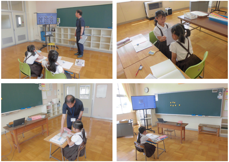 2限目からは授業です。3限目の様子を見に行くと、1・2年生も3・5年生も複式の算数でした。1年生は、ものの個数や種類を絵や図に表すことのよさを考えていました。じっくり考え、色を塗る姿が見られました。2年生は自国の復習、1時間前は?1時間後は?を二人で問題を出し合って考える姿が見られました。