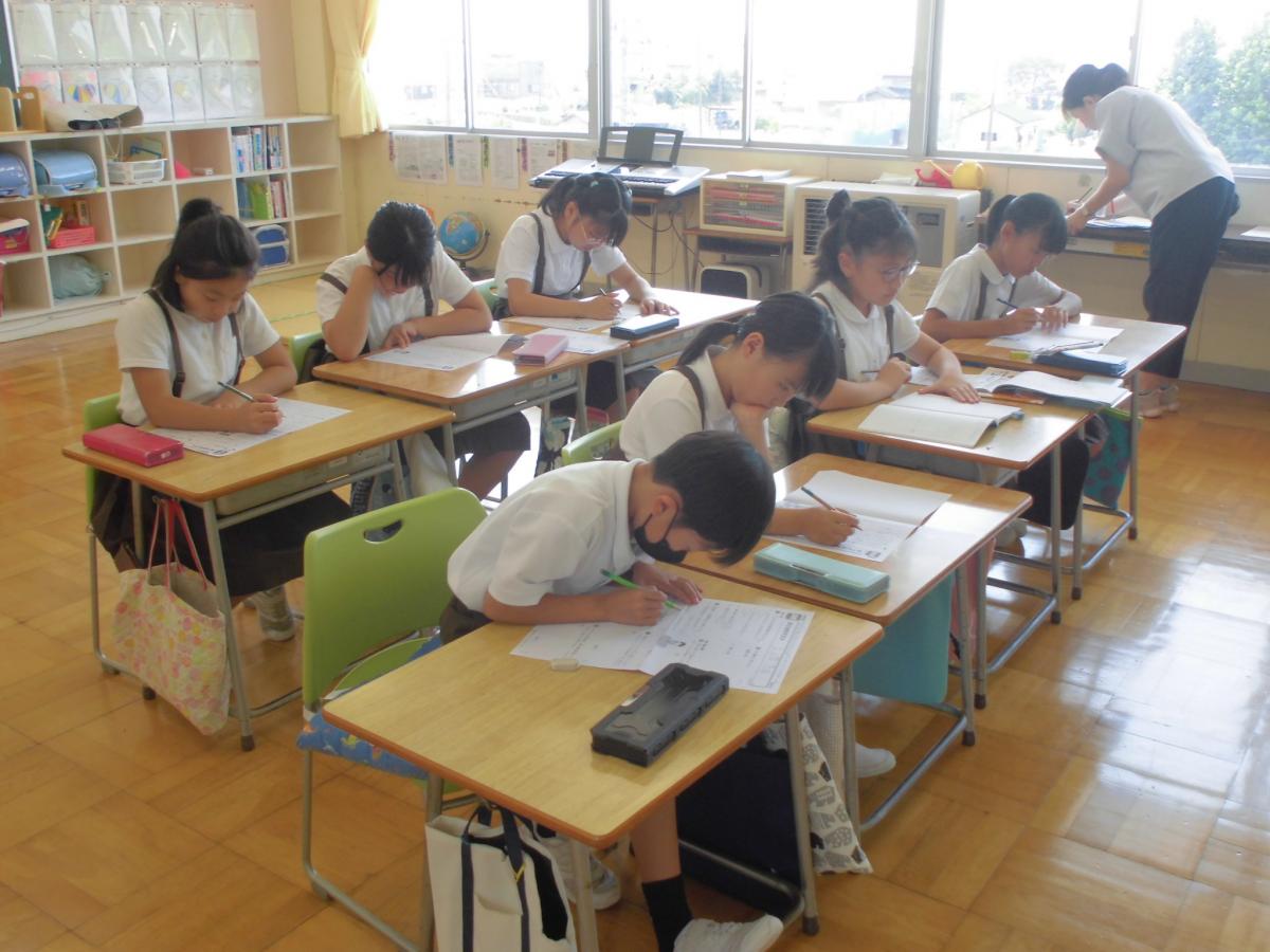 3・5年生は、1学期の復習テストに取り組んでいました。みんなじっくり最後まで考える姿が花丸◎!