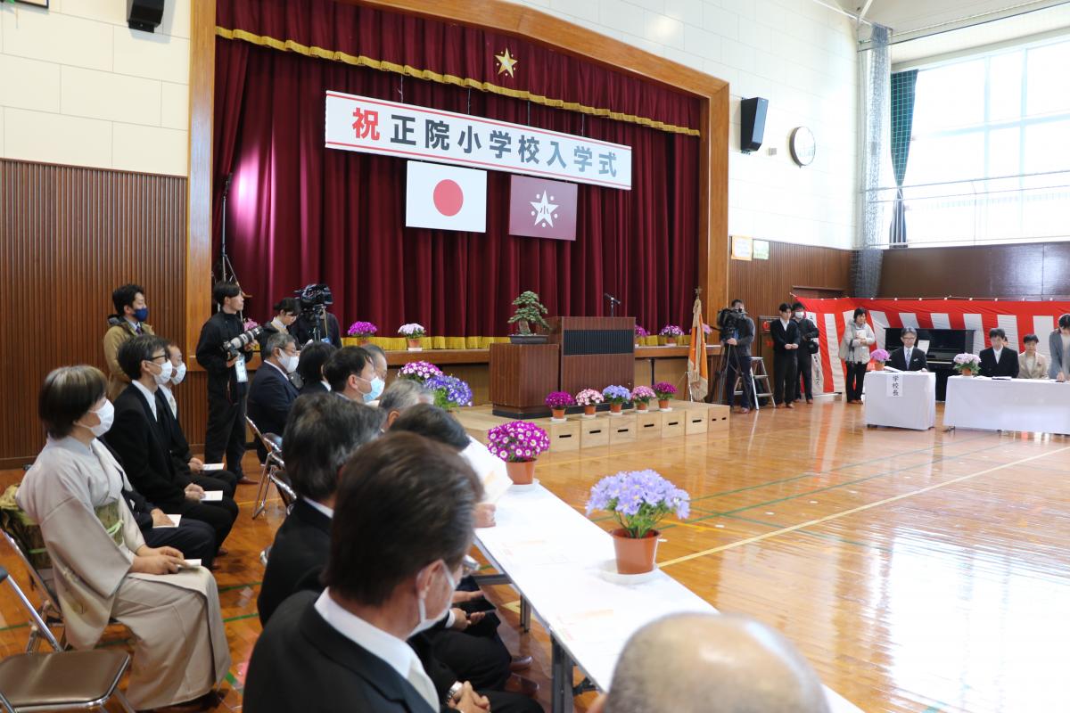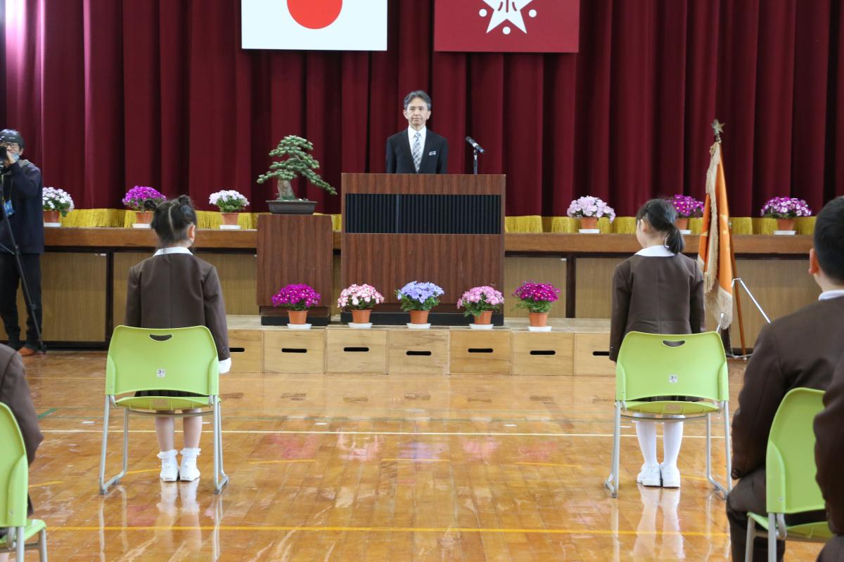 さわやかな 春の風に 校庭の 桜の木々もみなさんを お祝いするかのように ゆれている 今日。新しく 正院小学校に 入学された二名のみなさん ご入学おめでとうございます。今日から みなさんも 正院小学校の一年生です。わたしたちは みなさんの入学を とても楽しみにしていました。
