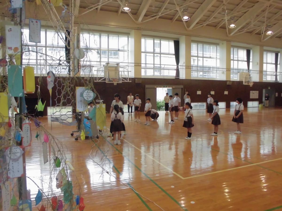 火曜日は集会の日、今日の児童集会は3つ、1・2年生学年発表、納賞、熱中症対策のお話です。まず1・2年生は生活科で学んだ『学校探検・町探検』で気づいたことや感想をお話してくれました。1年生は学校探検で、先生方にインタビューしたこと、2年生は町探検で気づいたことや感想をはっきりお話できていました◎