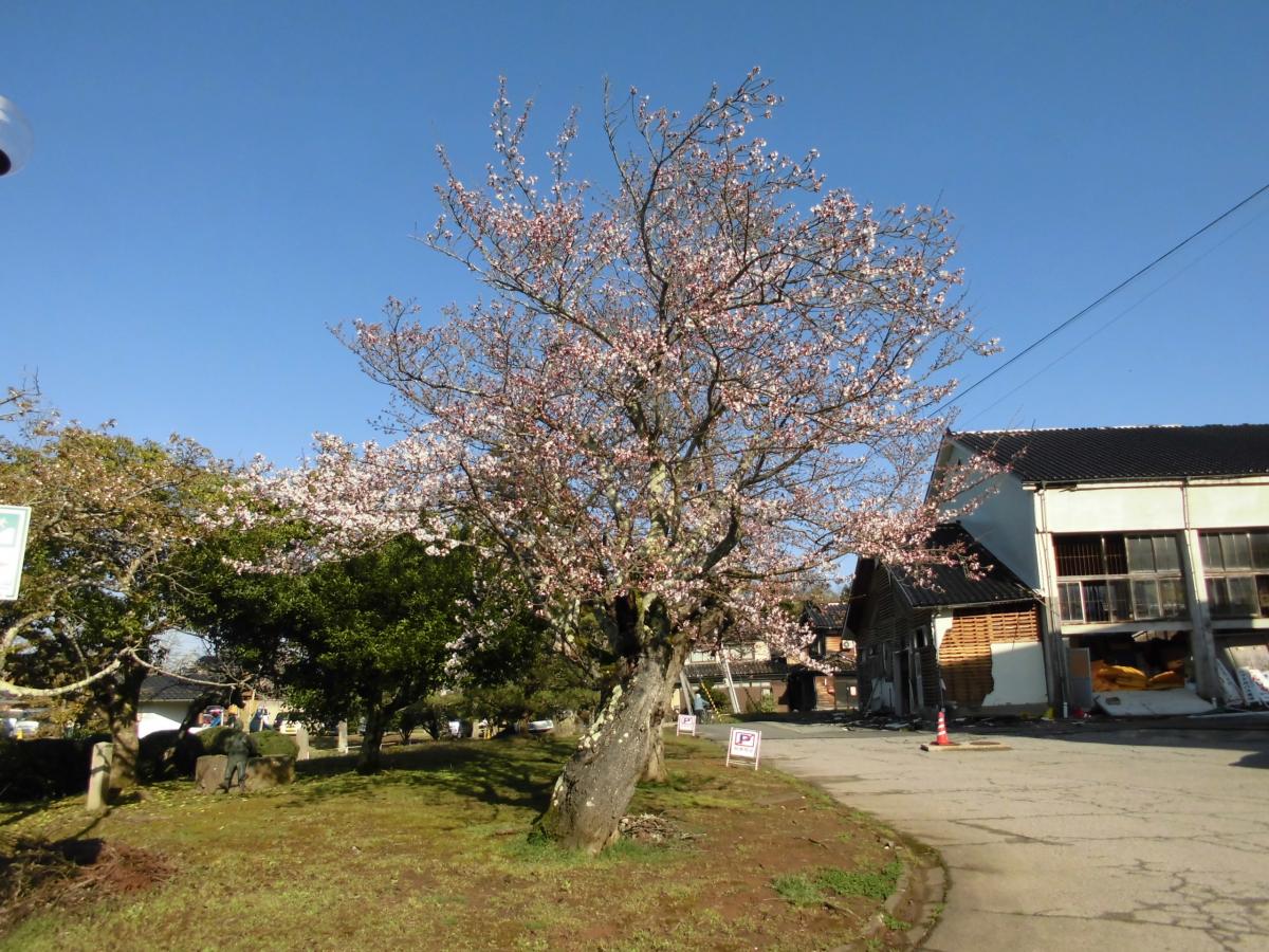 学校周辺を観察していると、ソメイヨシノとは色の違う花も。それだけで得をした気分になりました。