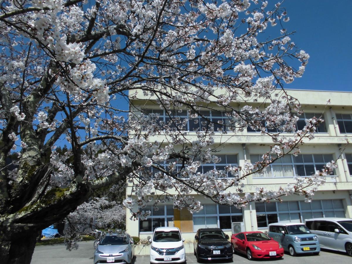 12日(金)、今日もよい天気で一日が始まります。学校前の桜はあっという間にもうほぼ満開です。