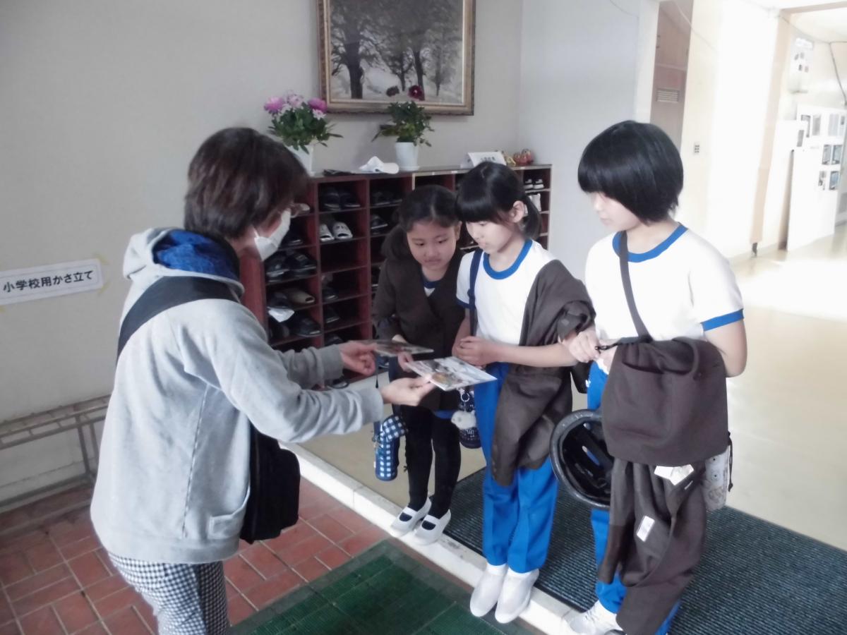 交通当番を終えて、教室に戻ろうとすると、福井県防災士の方が声をかけて下さり、折ると昆虫や恐竜を作ることができる折り紙を下さいました。ありがとうございました。