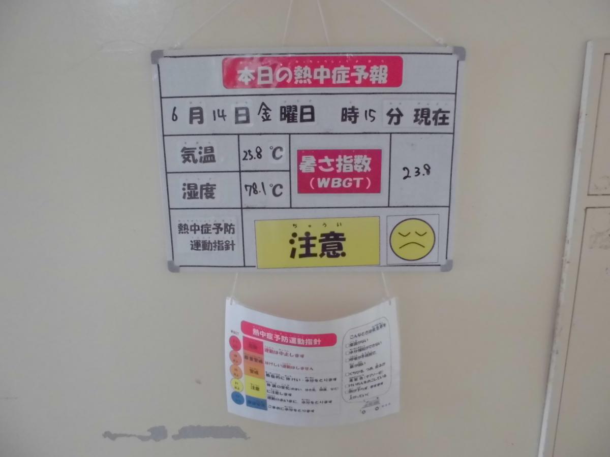 14日(金)、今日も朝から良い天気です。暑くなる予報もあり、毎日熱中症指数を掲示し、子どもたちと共有しています。