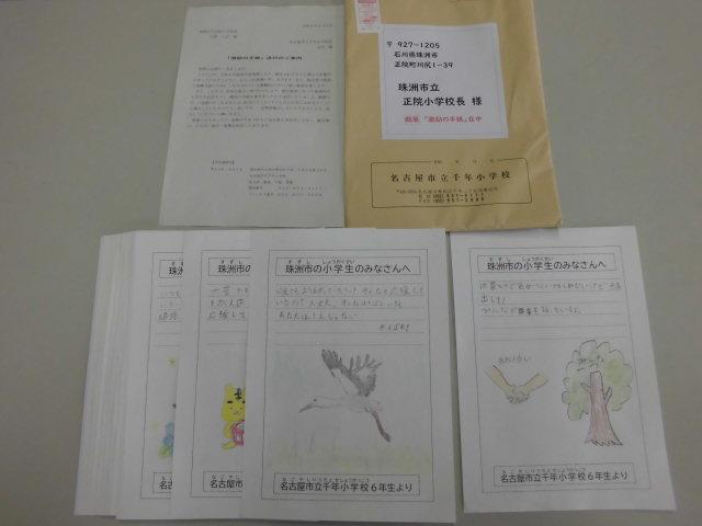2/19 今日も素敵な贈り物 投稿日時 : 2024/02/19 shouie 本日本校に届いた素敵な贈り物を紹介します。 ①激励の手紙 名古屋市千年小学校の児童の皆さん35人から、お手紙が届きました。明日、子どもたちに紹介して掲示する予定です。素敵なお手紙、ありがとうございました。 ②真宗大谷派の皆さんからお菓子 本校の炊き出しにおいでた真宗大谷派の皆さんから子どもたちにお菓子をいただきました。明日配付したいと思います。 皆さん、素敵な贈り物、ありがとうございました。 Tweet {{options.likeCount}} {{options.likeCount}} 0 コメント