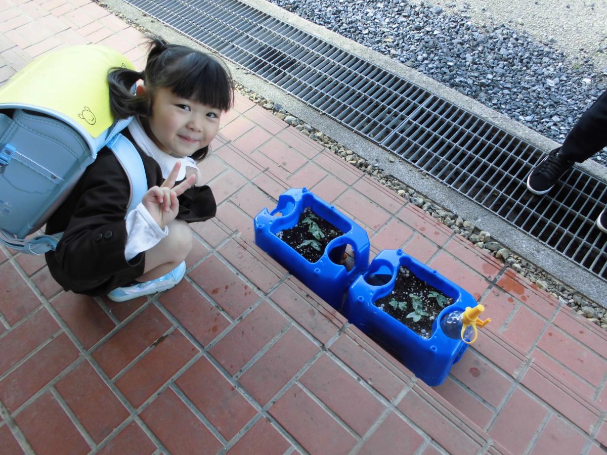 22日(水)の朝は、月に1度の読み聞かせです。朝から気持ちの良い快晴!玄関で読み聞かせボランティアの皆さんを待っていると、1年生が朝の水やりをしていました。朝顔が生長しているのをみて満面の笑みです。