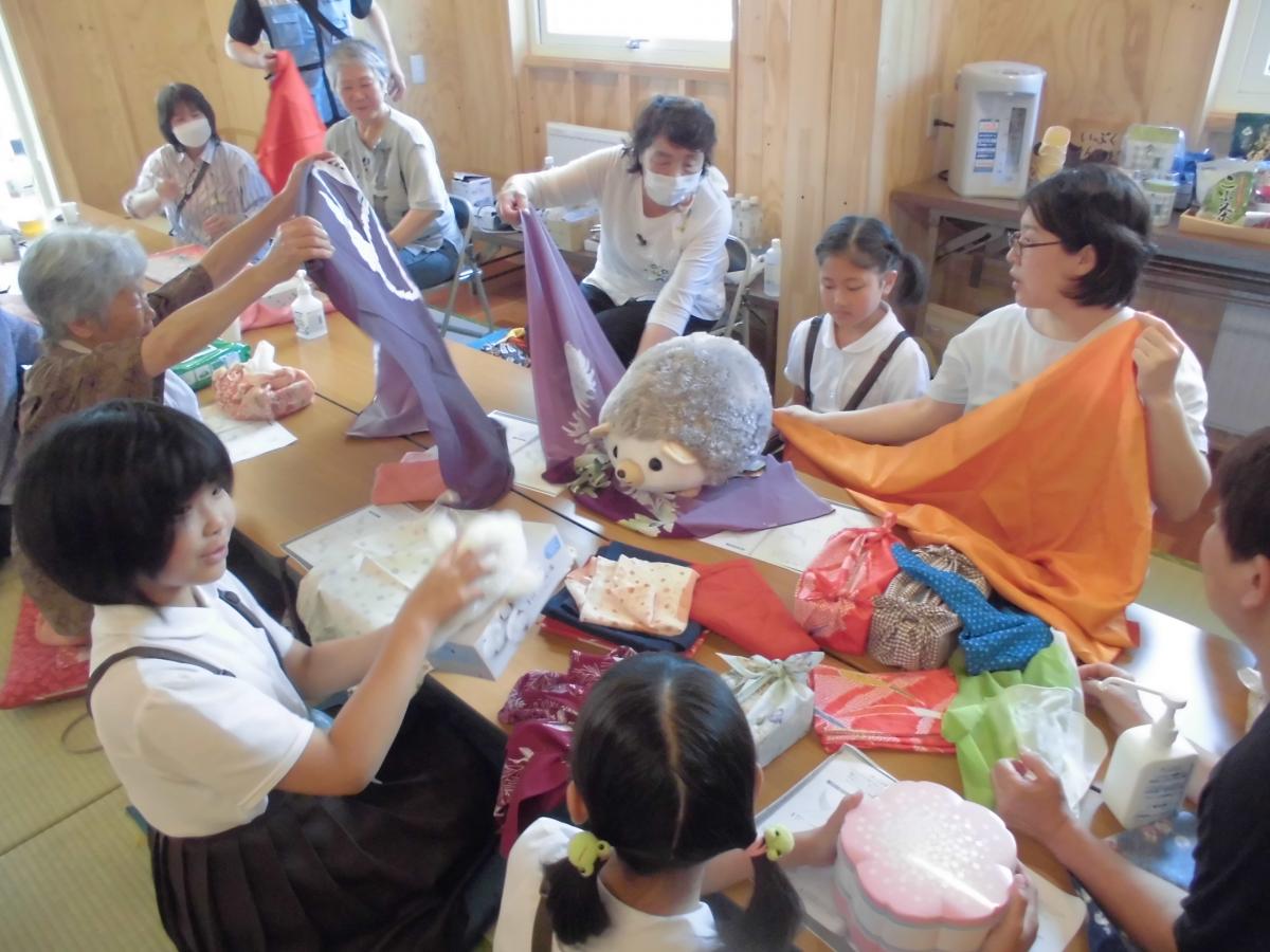 最後にはたくさんの風呂敷とプレゼントをいただき、地域の皆様の温かい愛を感じる時間ともなりました。秋前さんをはじめ、地域の皆様、事前のたくさんの時間をかけてのご準備も含め、ご参加・ご協力本当にありがとうございました。