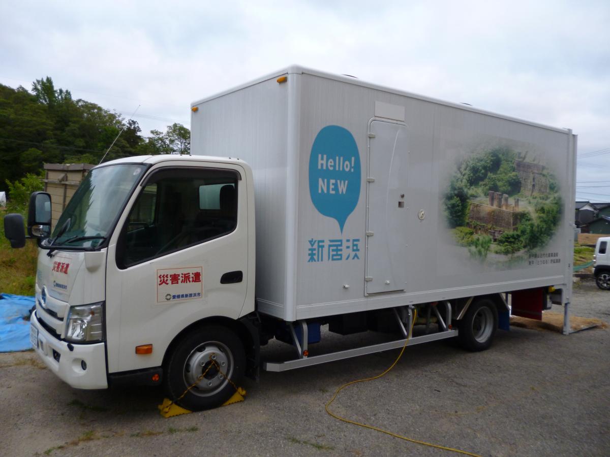 今まで飯田小学校で使用されていたトイレカーが本校駐車場に設置されました。現在使用中のトイレカー等不都合があった場合、児童及び職員のみで使用予定です。あわせてお菓子もいただきました。