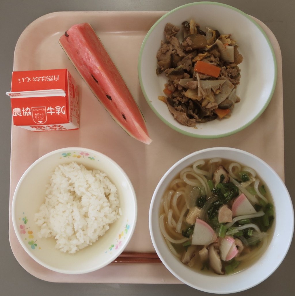 7月19日(金)の給食 投稿日時 : 2019/07/19 shouie ~麦ごはん、冷やしうどん、豚肉となすのキムチ炒め、 すいか、牛乳~ Tweet {{options.likeCount}} {{options.likeCount}} 0 コメント