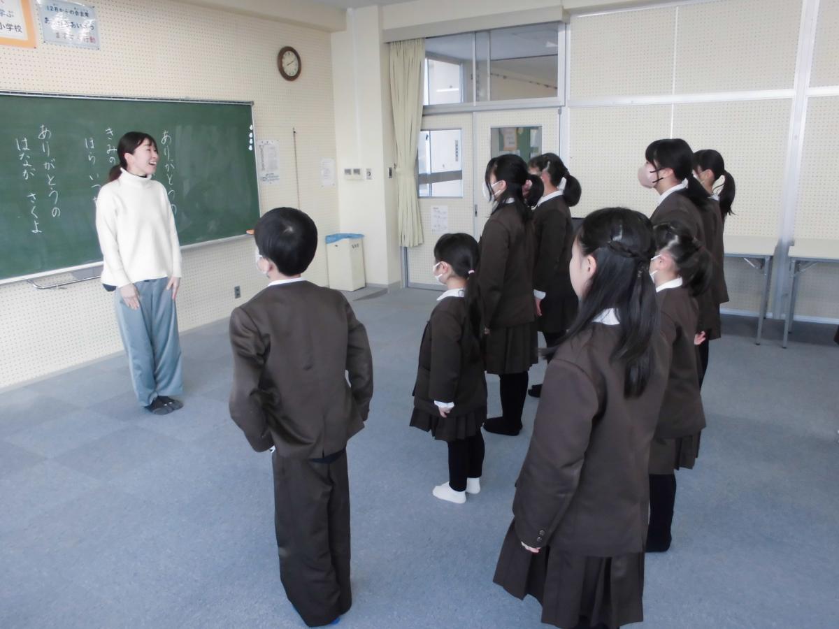 朝は児童集会、来週行う生活科・総合的な学習発表会に向けて、歌の練習です。歌は「ありがとうの花」、まずは歌詞の意味を考え、5年生が考えた動きを入れてみんなで歌いました。わずか10分の練習でしたが、気持ちを込めたよい練習となりました。本番での歌が楽しみです!