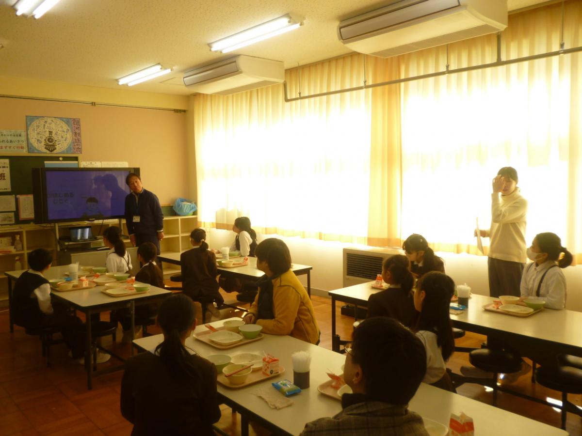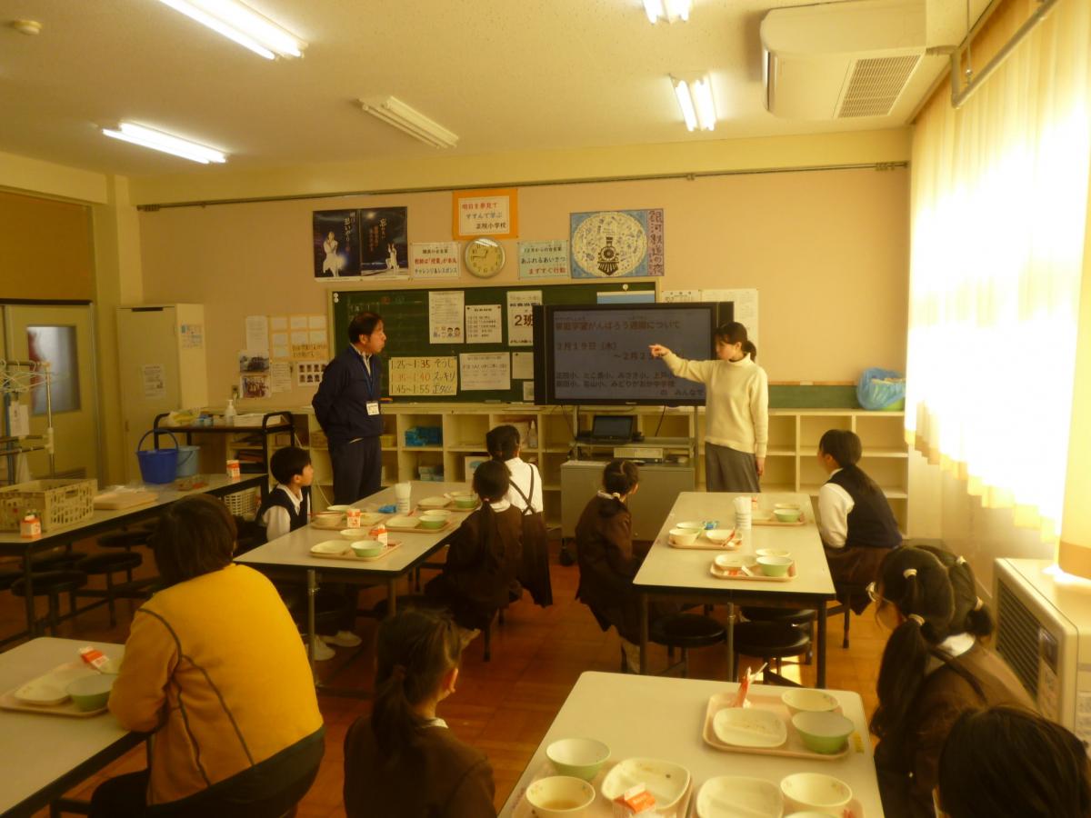 給食後には、来週木曜日から始まる家庭学習強化週間に向けて、ネット利用【わが家のきまり】についてのお話をしました。12月の児童アンケートで、ややネット利用の時間が増えていることを受けて、もう一度家族で【わが家のきまり】を見直し、よりよくネット利用できることをねらいとしています。大切な機会として、ぜひ家族と話し合ってほしいと思います。