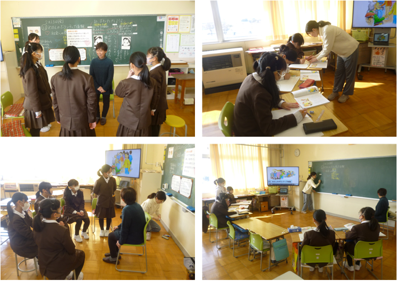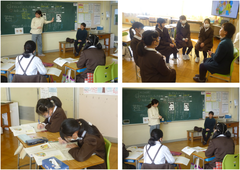 2限目には、ゲストティーチャーを招いての5年道徳の授業が行われました。ゲストティーチャーは正院町・川尻の瀬戸さん、2年前の地震後の避難所運営に、また現在も学校前仮設集会所での集まりの企画・運営に関わり続けている方です。今日のテーマは【社会への奉仕】、子どもたちにとっては少し難しいテーマでもありましたが、今の自分との関わりを考える良い時間となりました。瀬戸さんからは【社会への奉仕】について、みなさんのためにというより自分のためにしたいという想いであること、ちょっとした声掛けで仲間は増えていくということ、難しさがあるから面白いということなど多くを学ぶことができました。瀬戸さん、お忙しい中のご来校に深く感謝いたします。本当にありがとうございました!