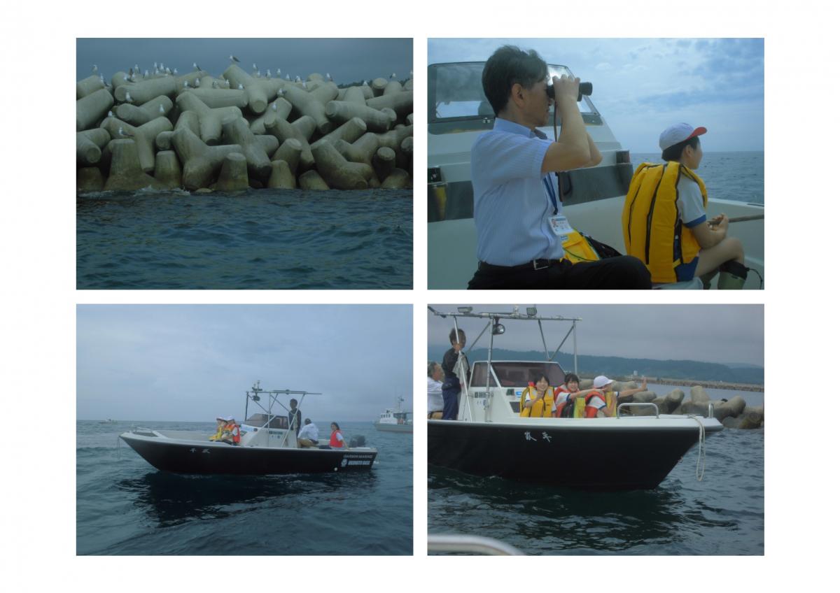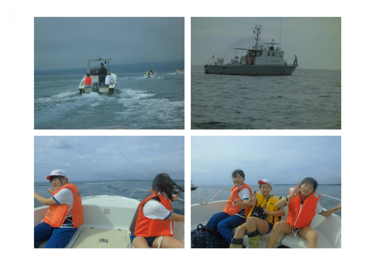 27日(火),8時30分から,6年生は海上体験活動に出かけました。直小が例年行っている海上体験活動に,今年度から正院小も参加させていただくこととし,向将司さん・瓶子明人さんの2隻の船に分かれて出発です。直小は5隻,計7隻での活動となりました。当初,蛸島沖を回り,見附島沖へ向かう予定でしたが,少し風があったため,見附島沖へ向かいました。風を切りながら船に乗る体験は最高!定置網や海上からの故郷の風景を眺めていると,あっという間に時間は過ぎていきました。途中赤潮を見つけたり,見附島沖が遠浅であったり,いろいろな発見があり,6年生はこの活動を満喫していました。途中,飯田港により,停泊していた海上保安庁の船の中も見学するなど,盛りだくさんの思い出に残るよい活動となりました。お世話になった皆さん,本当にありがとうございました。来年度以降も継続して取り組む予定です。他の学年の皆さんも楽しみにしていてください。