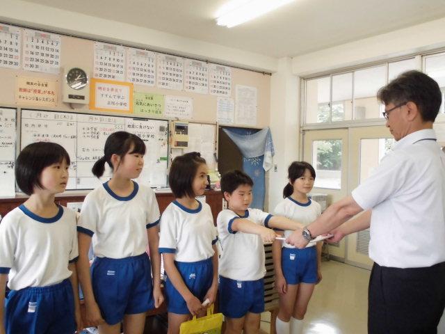 今回,日本教育弘済会から,2人でも組み立てられるテントをいただきこととなり,代表取締役の方が本校に見えられました。商品名は「クイックテント」。お披露目は,7月20日の全校海水浴で行う予定です。どんなテントかお楽しみに!