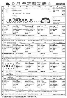9月の保健だより・給食だより・献立