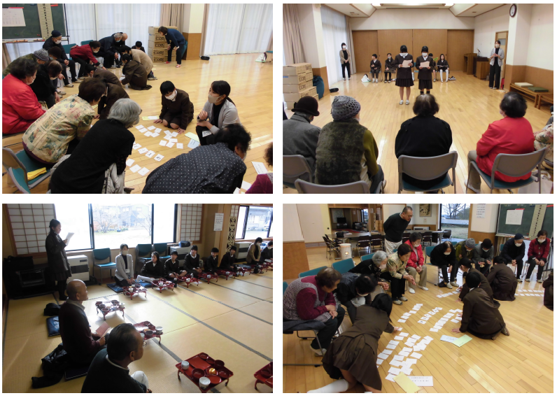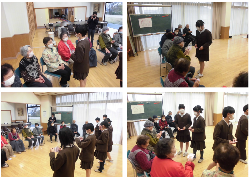 28日(火)の午前中、6年生は公民館で行われたいきいきサロンとの交流会に参加しました。いきいきサロンのメンバーとして十数名の皆さんにご参加いただきました。司会進行は6年生です。最初に自己紹介を行ったあと、子どもたちが作ったカード並べゲームに挑戦、次に先日の地震で使用した震災ベッドを自分たちで組み立てるゲームをしました。メンバーの方と子どもたちが協力して、楽しく活動できていました。
