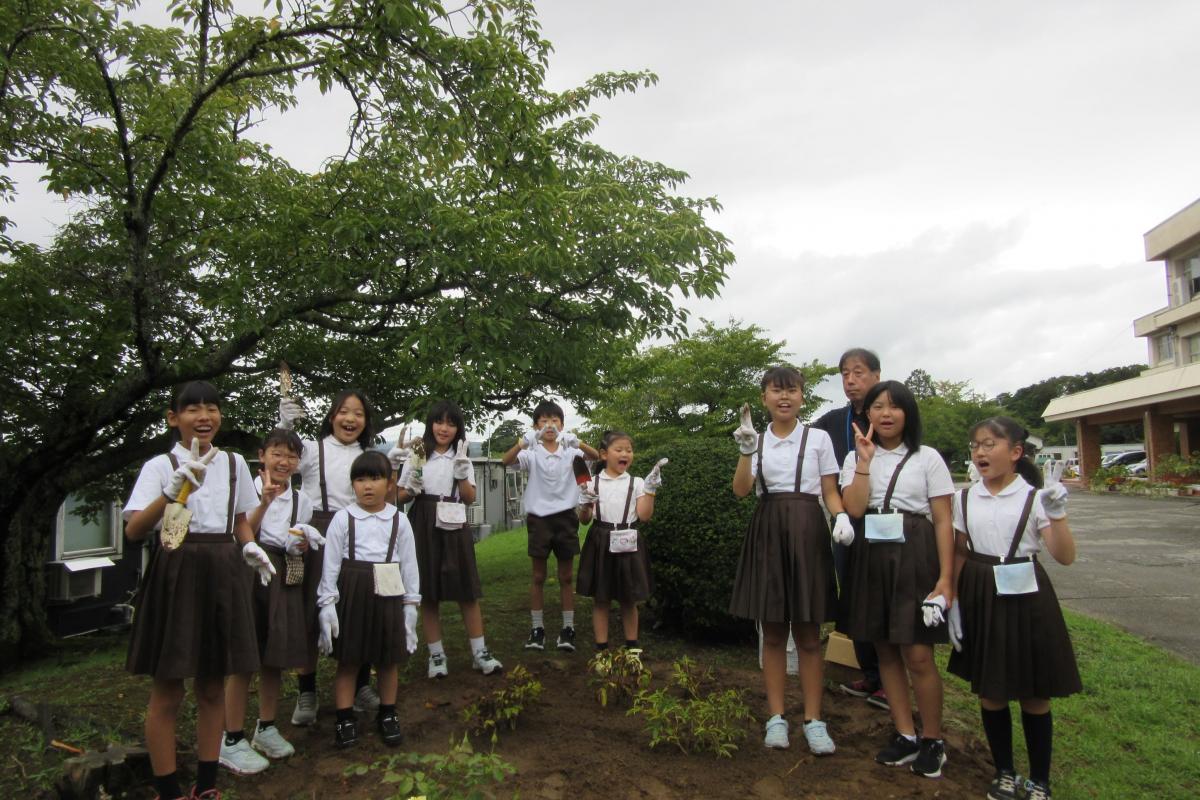 昼休みには正院町川尻の前淑子様からいただいたシャクヤクの苗木を校庭に植えました。大きく育ち、きれいな花が咲きますように!