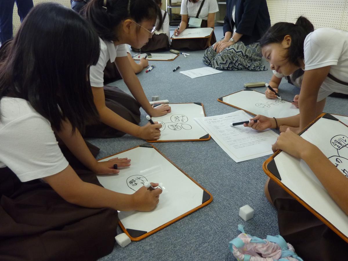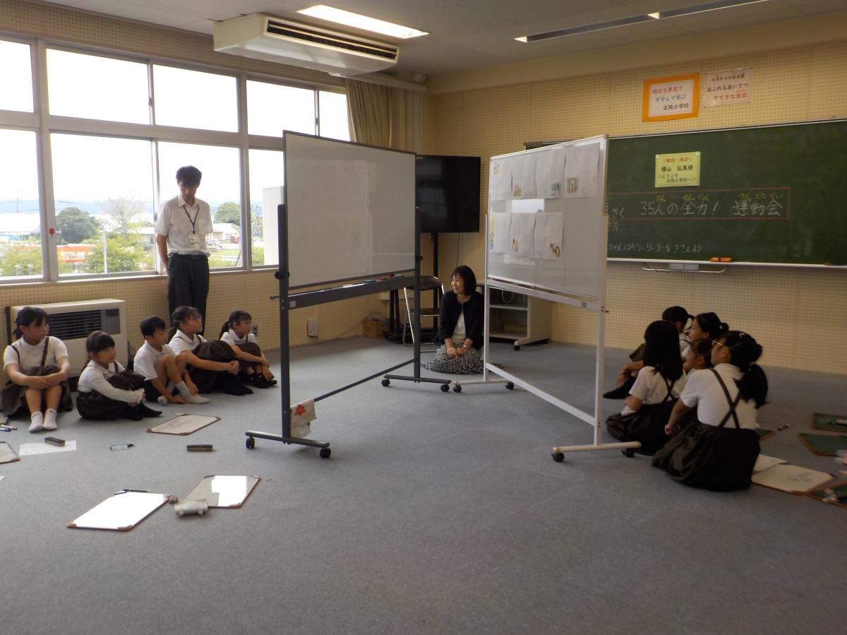 午後は、ホワイトボードミーティング®認定講師の横山弘美先生をお迎えして、授業と職員研修を行いました。5限目には全校での学級活動、テーマは【合同運動会のチームの目標決め】です。まず自分の考えをミニホワイトボードに書き、互いの考えを大きいホワイトボードに書き、最後に目標を決めるという流れでした。各チーム1~5年生が、学年を超えて話し合う姿がとても素敵でした、花丸◎!残念ながら少し時間が足りず、目標をまとめるまではできませんでしたが、よい目標になりそうです!