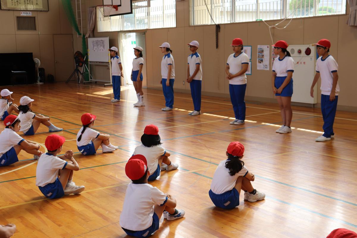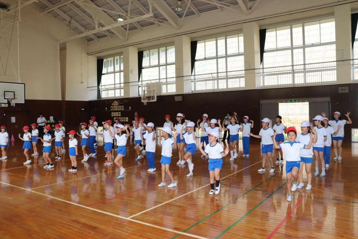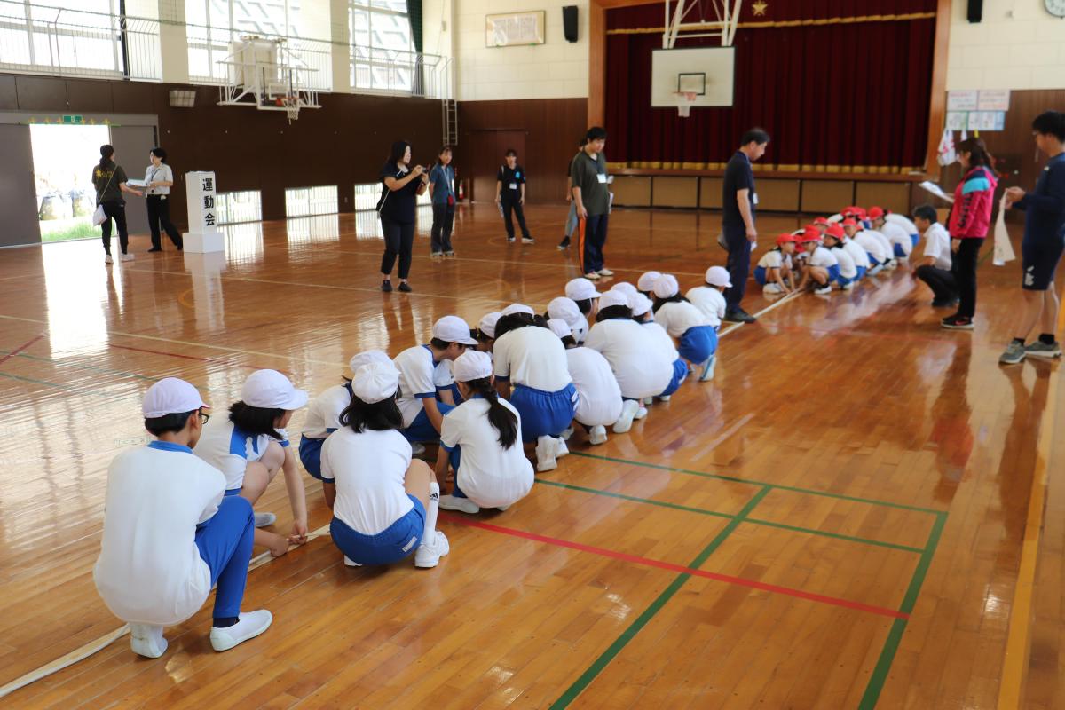 1~2限目は、来週の合同運動会に向けての2度目の合同練習です。大玉転がしや徒競走、応援歌、綱引き、ダンスの練習に取り組みました。1つ1つの種目の並び方や入退場の仕方、職員の動き等を確認しました。子どもたちは、先生方の話を聞いて、精一杯練習に取り組んでくれました。