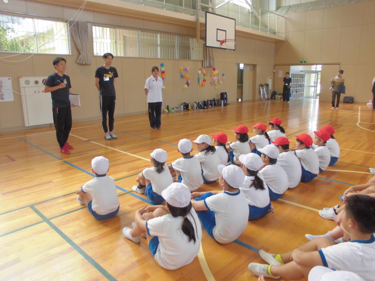 4限目は、運動会に向けて走りの上達に向けた走り方のポイントを教えていただきました。子どもたちは少しでも速く走れるポイントを、実際にやってみながら身につけようとする様子が見られました。