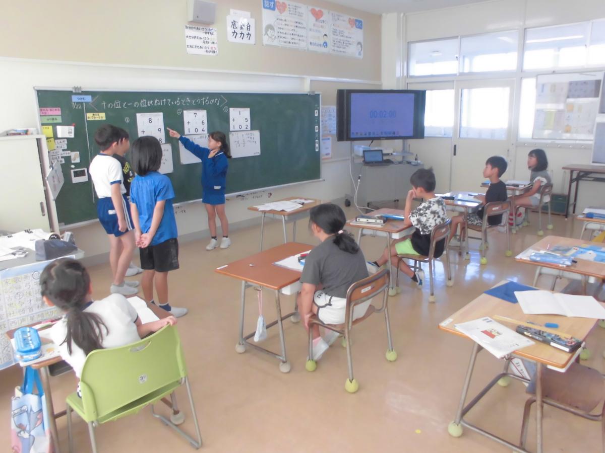 また、6限目の様子は、放課後開かれた学校運営協議会のメンバーの皆さんにもご参観いただきました。クラブの様子だけでなく、2年算数の授業も見ていただきました。たし算のひっ算の仕方について、2人で問題をつかみ、考えるべきことを確認しながら、自分の考えを持ち、説明しあう姿に成長を感じる時間でした、花丸◎!