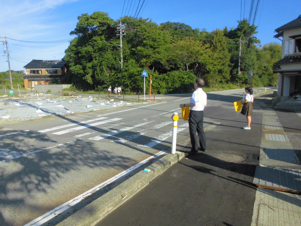 26日(金)、朝夕はすっかり秋らしい毎日となってきました。まだ日中は気温が高く、エアコンはまだ必要ですね。今朝もグッドマナーキャンペーンの取組として、1家族が横断歩道に立ち、子どもたちの登校を見守ってくれました。また正院駐在さんもご協力下さって、ありがたい限りです。そんな中子どもたちは今日も全員元気に登校してくれました、花丸◎!