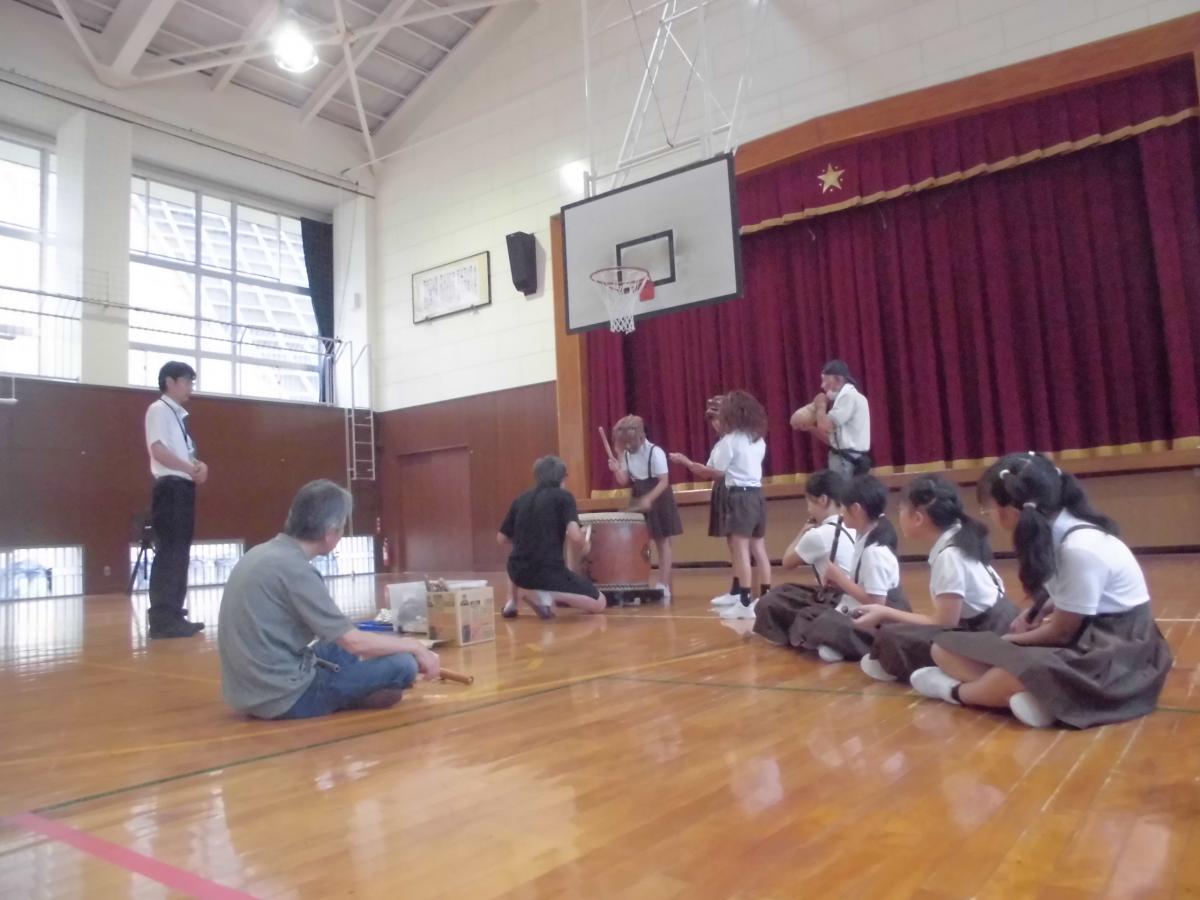 6限目、3・5年生は伝承芸能クラブの練習に取り組みました。八幡太鼓グループは、夏休みの練習はできなかったのですが、お面をつけて、3人で交代しながら演奏を続ける姿に大きな成長を感じました、花丸◎!龍笛グループは、夏休みに何度も練習に取り組んだことで、7月とは見違える上達した姿に。指使いや音の出し方に自信が感じられました。練習後半には、一緒に音を合わせる練習もできました。10月2回の練習を経て、11月のふれあい集会でのお披露目の場に臨みます。今の自分たちの姿に自信をもって、残り2回の練習に取り組んでほしいと思います。