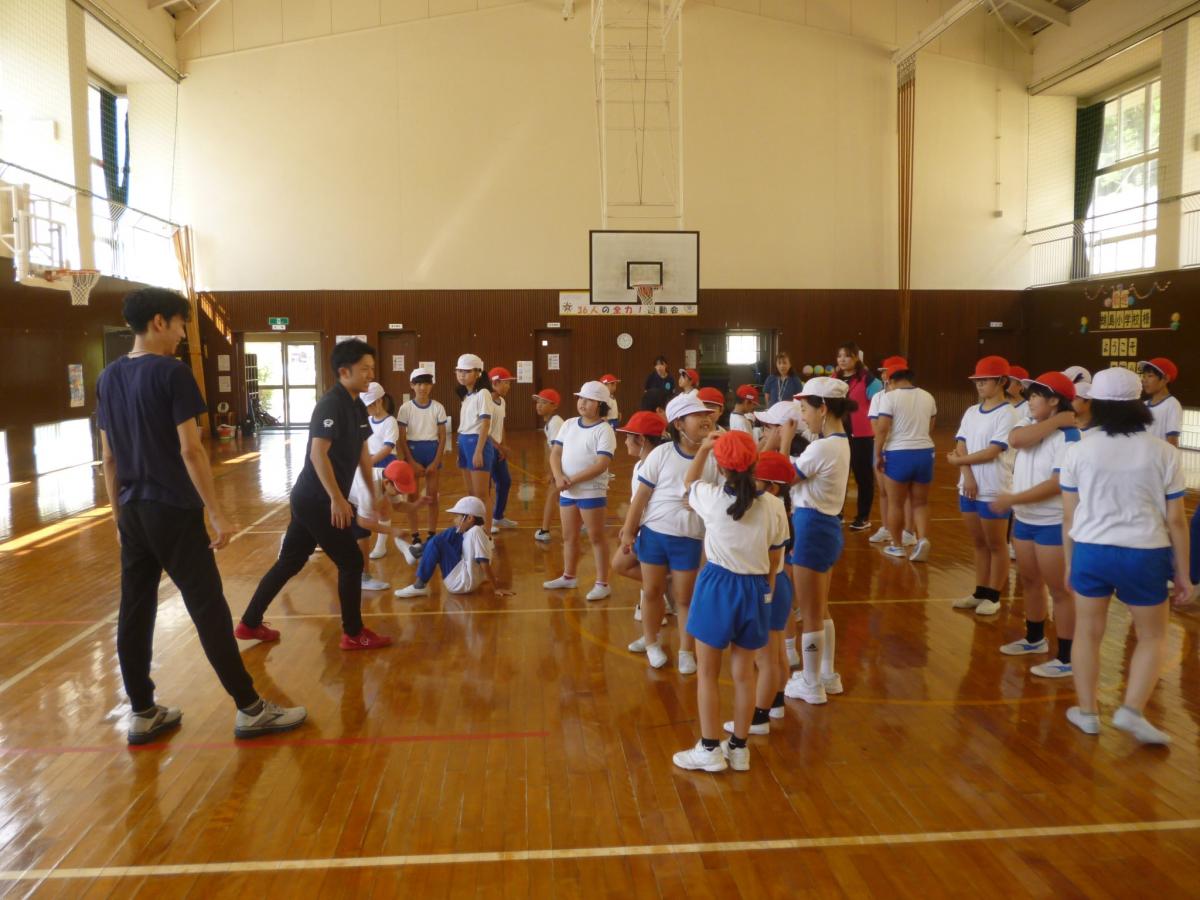 3~4限目には、先週19日に引き続きかほく市で活動されている「総合型地域スポーツクラブ クラブパレット」から3名の方が来校され、今回もからだを動かしながらスポーツを通しての遊びを体験し、後半は運動会に向けて走りの上達に向けた練習に取り組みました。子どもたちは互いに協力しながら、1つ1つのプログラムを楽しむ姿が見られました、花丸◎!