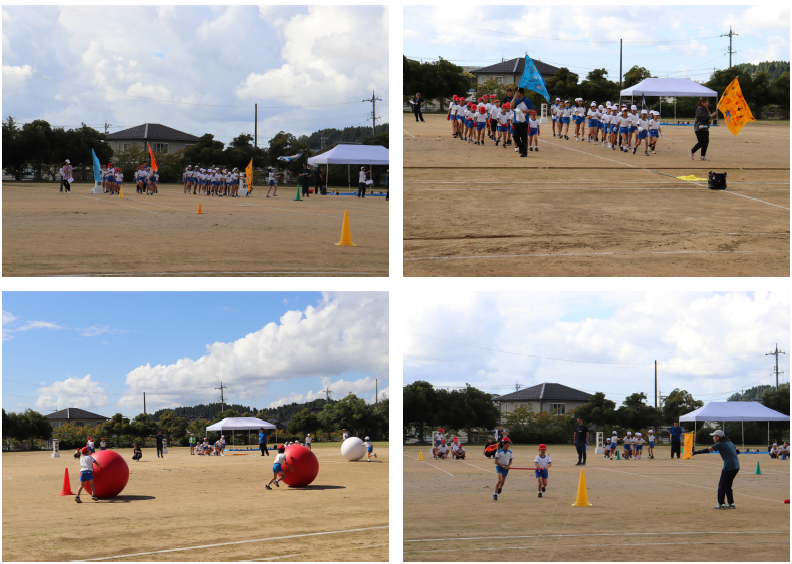 最初に蛸島小・河元校長先生からのご挨拶です。「今年は2回目の蛸島小・正院小の合同運動会を行います。2回目ってとても大切。各校の5・6年生のリーダーが、自分で考え下級生の子たちを引っ張る姿を期待して見ています。下級生のお手本となる行動に期待します。勝敗にばかりこだわらず、失敗しても大丈夫、2校が関わり協力し合って楽しんでほしい。」とのお話がありました。