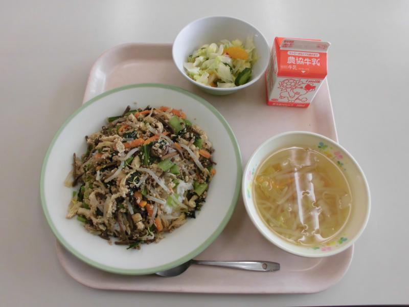 ビビンバは子どもたちに大人気のメニューで、おいしくいただきました。ごちそうさまでした。