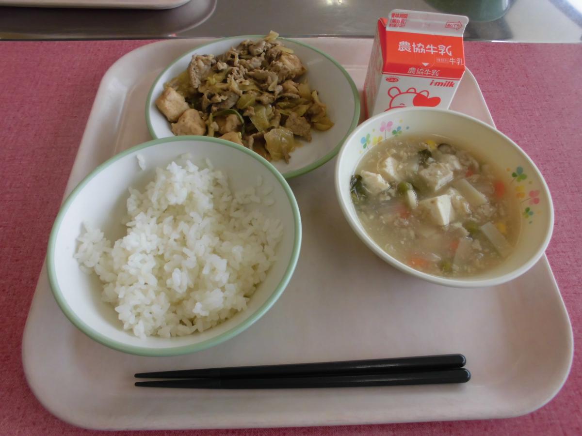 今日のメニューは、ご飯、ホイコーロー、豆腐の中華煮、牛乳でした。中華のメニューでみんな黙々と食べていました。ごちそうさまでした!