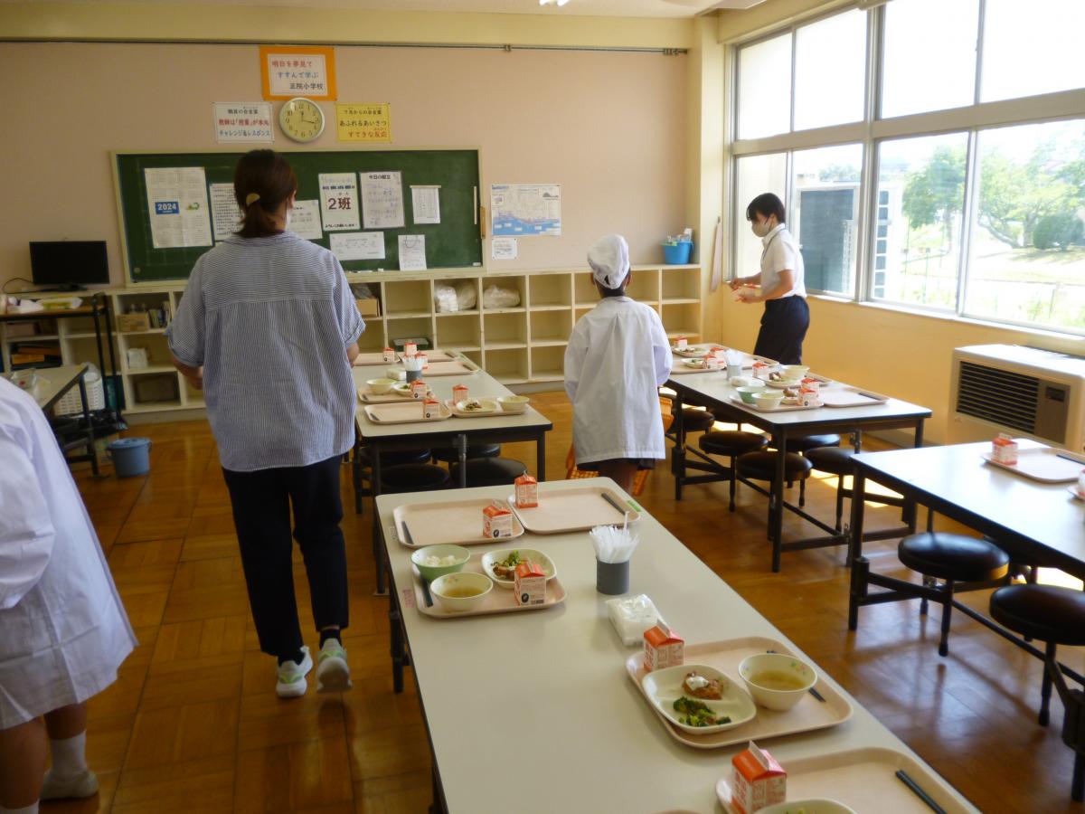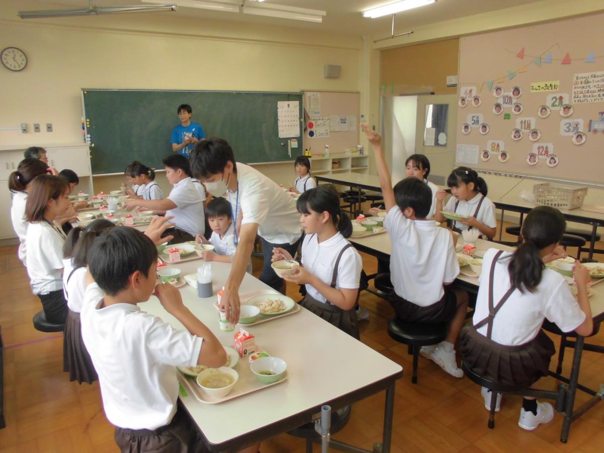 3日(火)、今日のメニューは、ご飯・豚肉のみそ炒め・あっさりピクルス・えのきのみそ汁、牛乳でした。来週予定している給食試食会に向け、本校の給食を担当している飯田小・森岡栄養教諭が来校し、子どもたちと一緒に給食を食べて下さいました。今日もみんなで味わって、完食できました。ごちそう様でした。