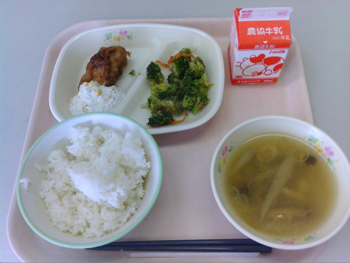 5日(木)、今日のメニューはご飯・チキン南蛮・ブロッコリーのおかか和え・ごぼうとしめじのみそ汁・牛乳でした。今日は木曜日においでる紺谷先生や月に2度程度おいでる表スクールカウンセラーさんと一緒に、会話しながら楽しく食べる様子が見られました。ごちそう様でした!