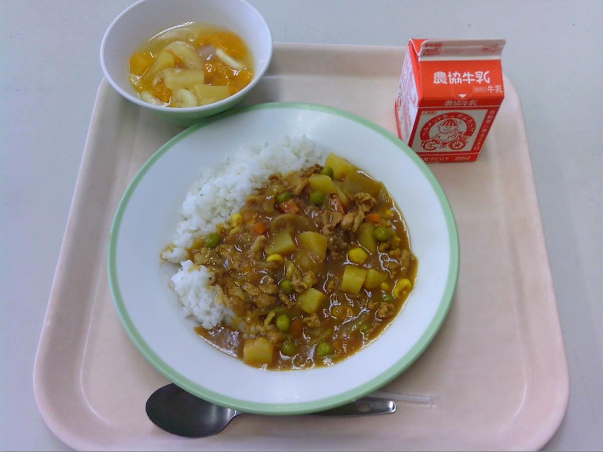 6日(金)、今日のメニューは、ポークカレー・フルーツポンチ・福神漬けでした。子どもたちの大好きなカレー、みんなあっという間に食べ切っていました。福神漬けはあまり得意ではない児童が多かったようです。今日も美味しいメニューをありがとうございました。