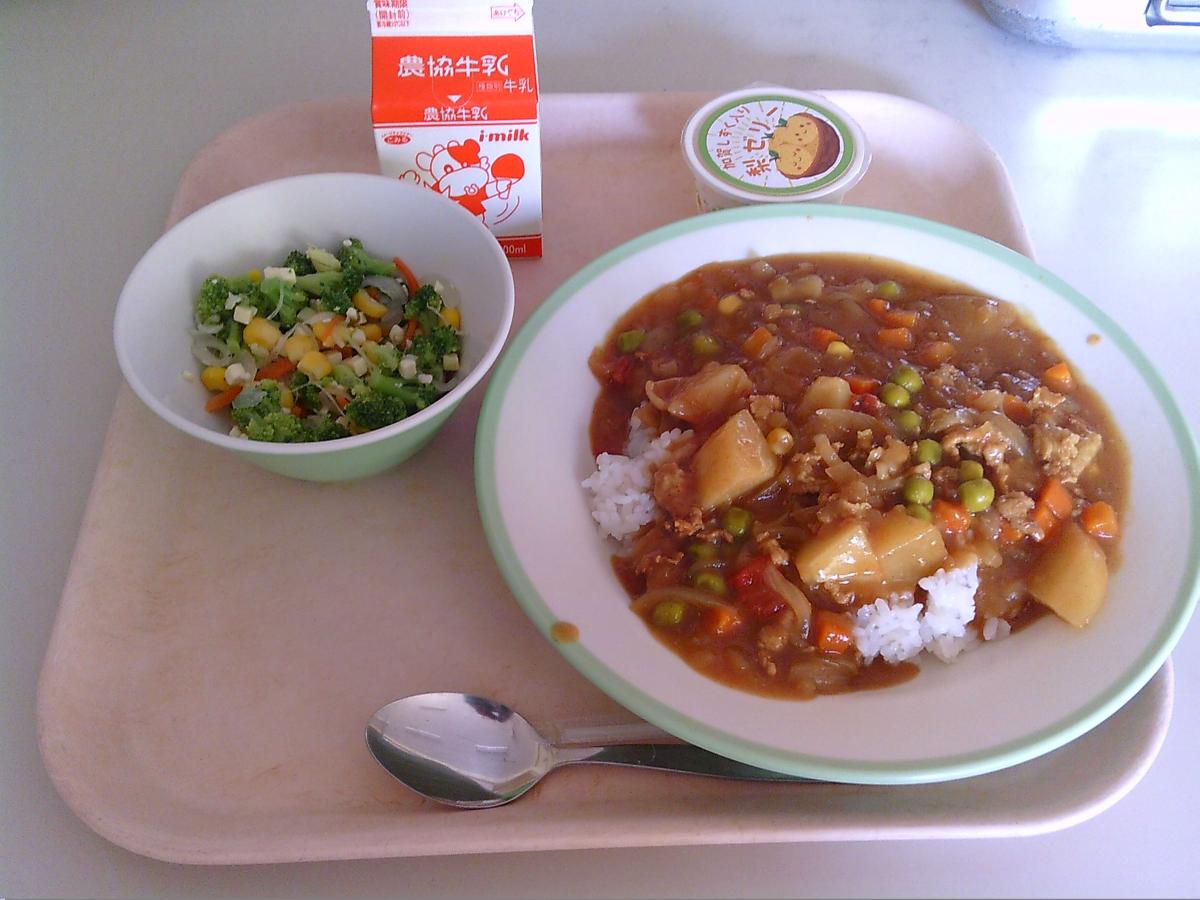 今日のメニューは、ポークカレー・ブロッコリーのチーズサラダ・梨ゼリー・牛乳でした。子どもたちの大好きなカレー、みんな美味しそうに時間内に食べ、梨ゼリーも味わっていました。今日も美味しい給食をありがとうございました!