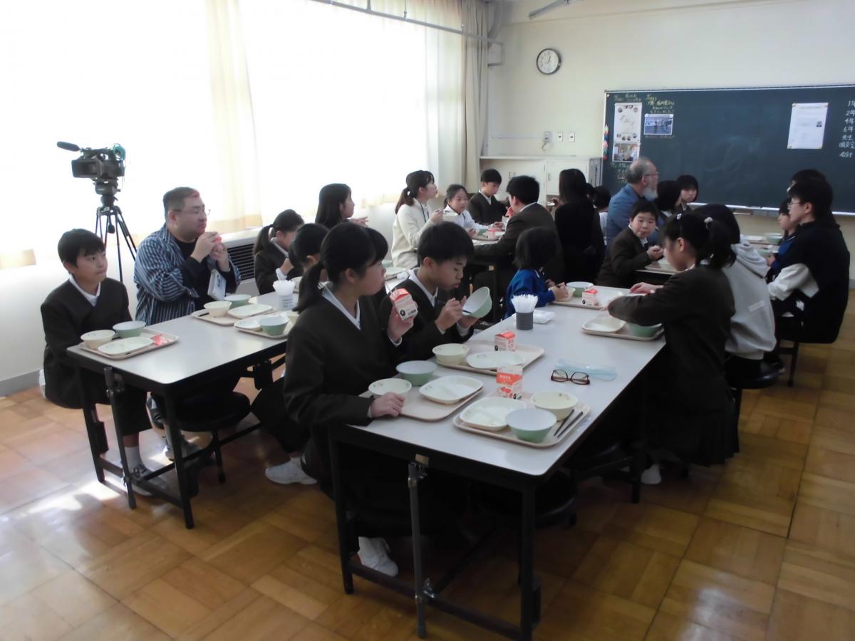 今日のメニューは、ご飯・鶏肉のさんしょうみそ焼き・大根のゆかり和え・ほうれんそうのみそ汁・牛乳でした。今日は、午後からふれあい天文学の授業を行って下さる国立天文台天文情報センターの皆さんと一緒に、会話しながら楽しく美味しくいただくことができました。今日も美味しい給食をありがとうございました!