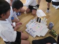 家から持ってきた材料を使って、自分だけのオリジナルおもちゃを作りました。