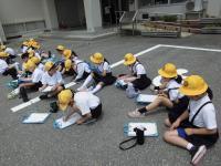 生活の時間にまち探検に行きました。外日角小学校の周りの建物を記録しながら歩きました。