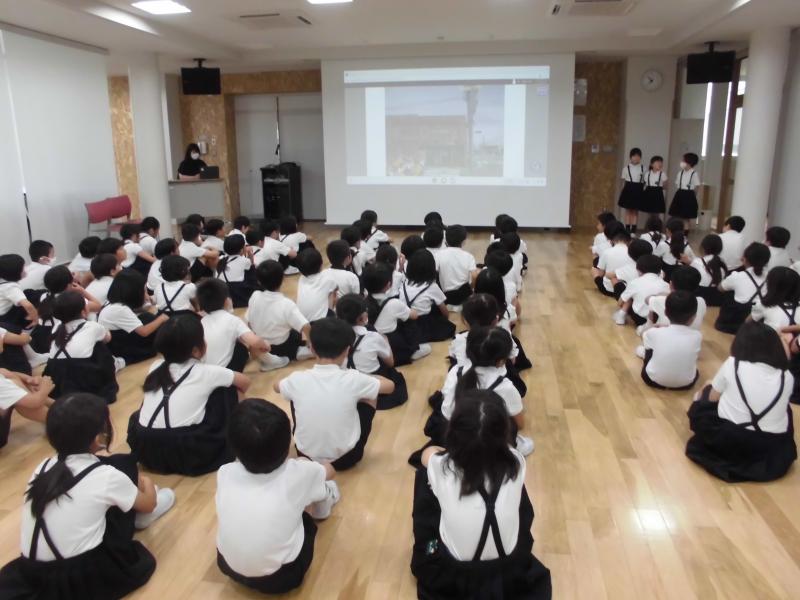 今日は、2年1組が町たんけんに行きました。住吉神社やデイサービスを見てきました。