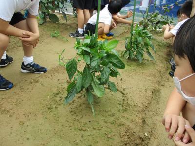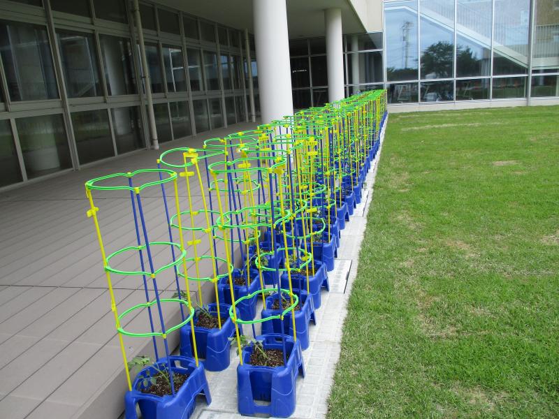 1時間でみんな植えることができました。たくさんミニトマトがとれるといいですね。