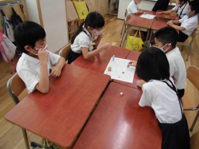 すごろくを使って、楽しみながらお互いの夏休みについて話していました。