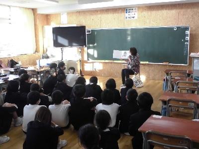 国語の「図書館を使いこなそう」という単元の学習で、司書の荒山先生に図書館のお話をしていただきました。日本十進分類法のことをクイズを交えながらわかりやすく教えてくださいました。また、5年生にぜひおすすめしたい本も紹介してくださり、とてもすてきな時間となりました。
