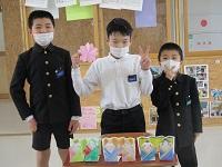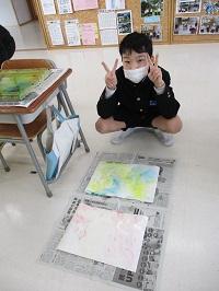卒業式に向けて、掲示作りにみんなで取り組んでいます。自立活動の時間を使って、掲示に使う用紙をマーブリングして作りました。それぞれカラフルな用紙を仕上げることができました。